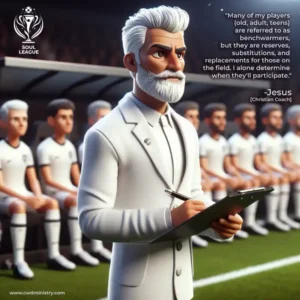 “Our Coach doesn’t use all his key players simultaneously, but he always has reserves for the players on his battlefield. God has many substitutions for his players, and He knows the best time to remove and replace every player at the right moment. While some players may be labeled as benchwarmers, they serve as reserves and replacements, stepping in when those on the battlefield grow weary. By calling the Coach for help when wounded, he sends his medics (Angels) to treat (minister to) his players.